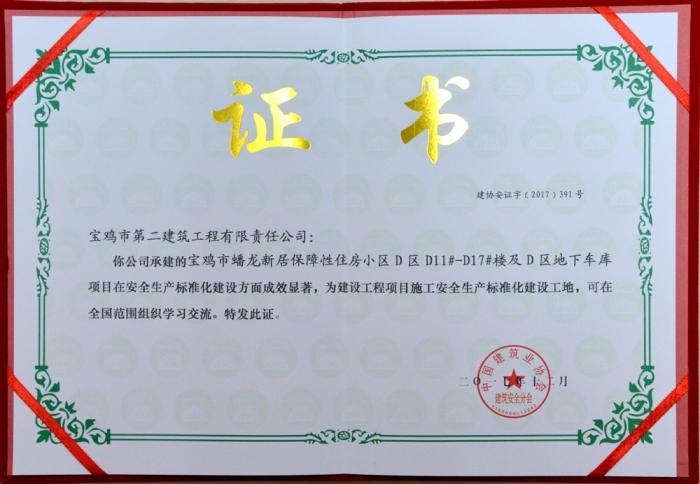 全國安全生產(chǎn)標準化建設工地(寶雞市蟠龍新居保障性住房小區(qū))