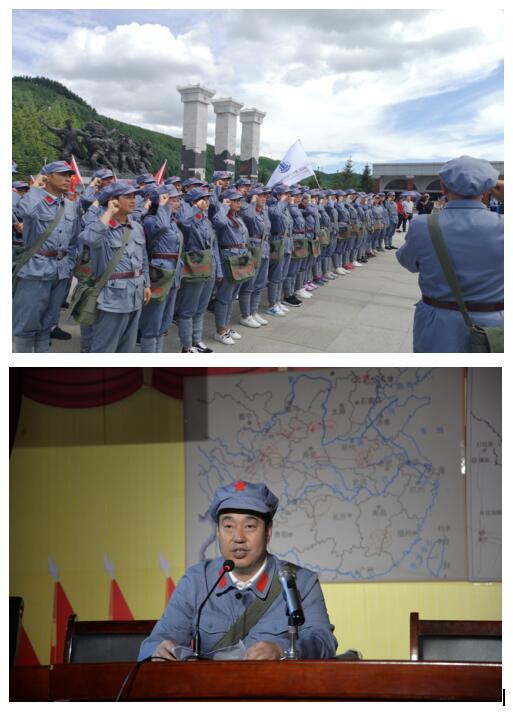 前往六盤山途中,黨員們開展了唱紅歌、講紅色故事、朗誦紅色詩詞等活動,現(xiàn)場氣氛十分熱烈;到達(dá)六盤山后,黨員們穿紅軍服,接過紅一、二、四方面軍軍旗,沿著象征著紅軍二萬五千里長征的紅軍小道,途中經(jīng)過紅軍長征經(jīng)歷的“遵義會議”、“四渡赤水”、“飛奪瀘定橋”、“巧渡金沙江”、“紅軍過草地”、“天險臘子口”等大事件微縮景觀。在六盤山頂峰廣場三軍會師紅旗墻前,全體黨員重溫了入黨誓詞,列隊進(jìn)入紅軍長征紀(jì)念館。在紀(jì)念館里,大家合唱了紅歌《歌唱祖國》,上了一次別開生面的黨課,在講解員的帶領(lǐng)下參觀革命文物陳設(shè)。再一次重溫了黨的光輝歷程,接著同志們就地吃了一頓紅軍餐,親身體驗到了紅軍長征的悲壯歷程和經(jīng)受的艱難困苦,感受偉大的長征精神。