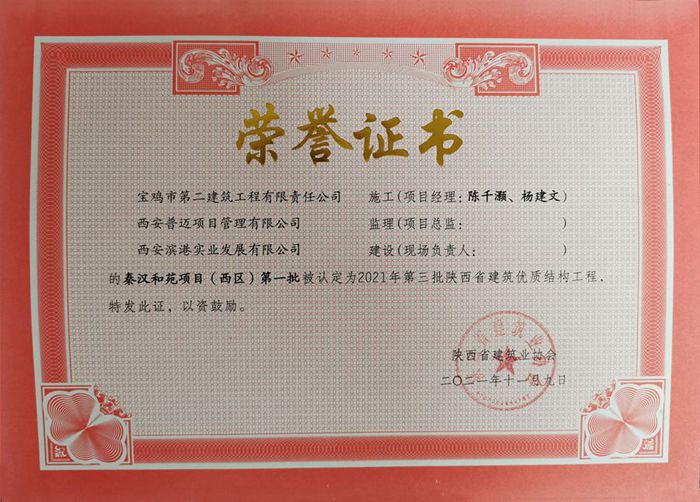 2021年度陜西省建筑優(yōu)質(zhì)結(jié)構(gòu)工程(秦漢和苑項目(西區(qū))第一批)