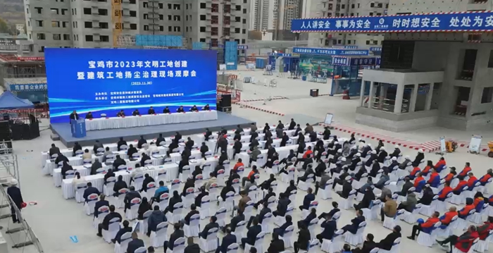 11月30日,由寶雞住房和城鄉(xiāng)建設(shè)局主辦的2023年文明工地創(chuàng)建暨建筑工地?fù)P塵治理現(xiàn)場觀摩會(huì)在集團(tuán)公司承建的龍豐村安置房建設(shè)項(xiàng)目現(xiàn)場召開。此項(xiàng)目是全省遴選的26個(gè)文明工地示范項(xiàng)目中,寶雞地區(qū)唯一入選的觀摩項(xiàng)目。