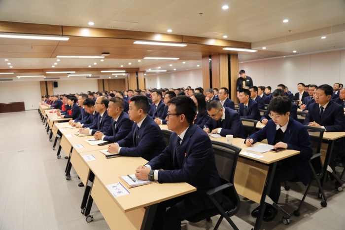 集團公司高層領(lǐng)導(dǎo)、中級管理人員、受表彰獎勵的優(yōu)秀單位和個人、總部全體及2023年度新員工,共計300余人參加了會議。副總經(jīng)理、總會計師嚴(yán)海軍主持會議。