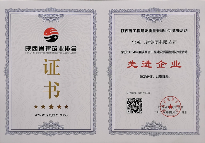 2024年度陜西省工程建設(shè)質(zhì)量管理小組活動(dòng)先進(jìn)企業(yè)