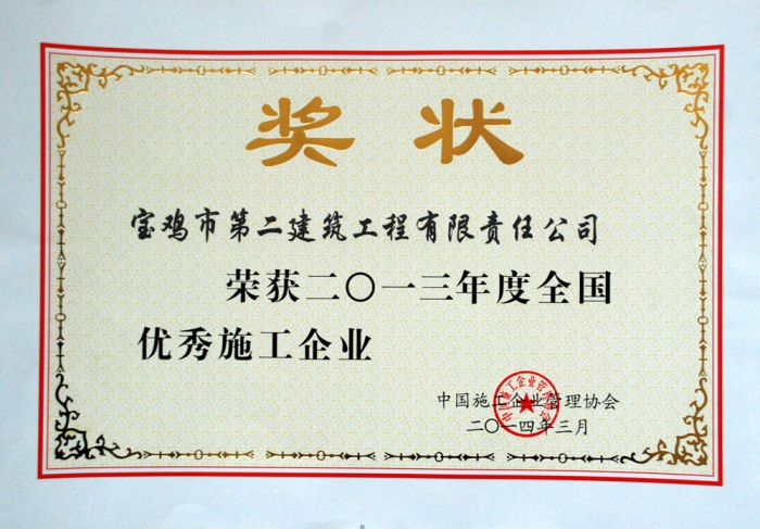 2013年度全國優(yōu)秀施工企業(yè)